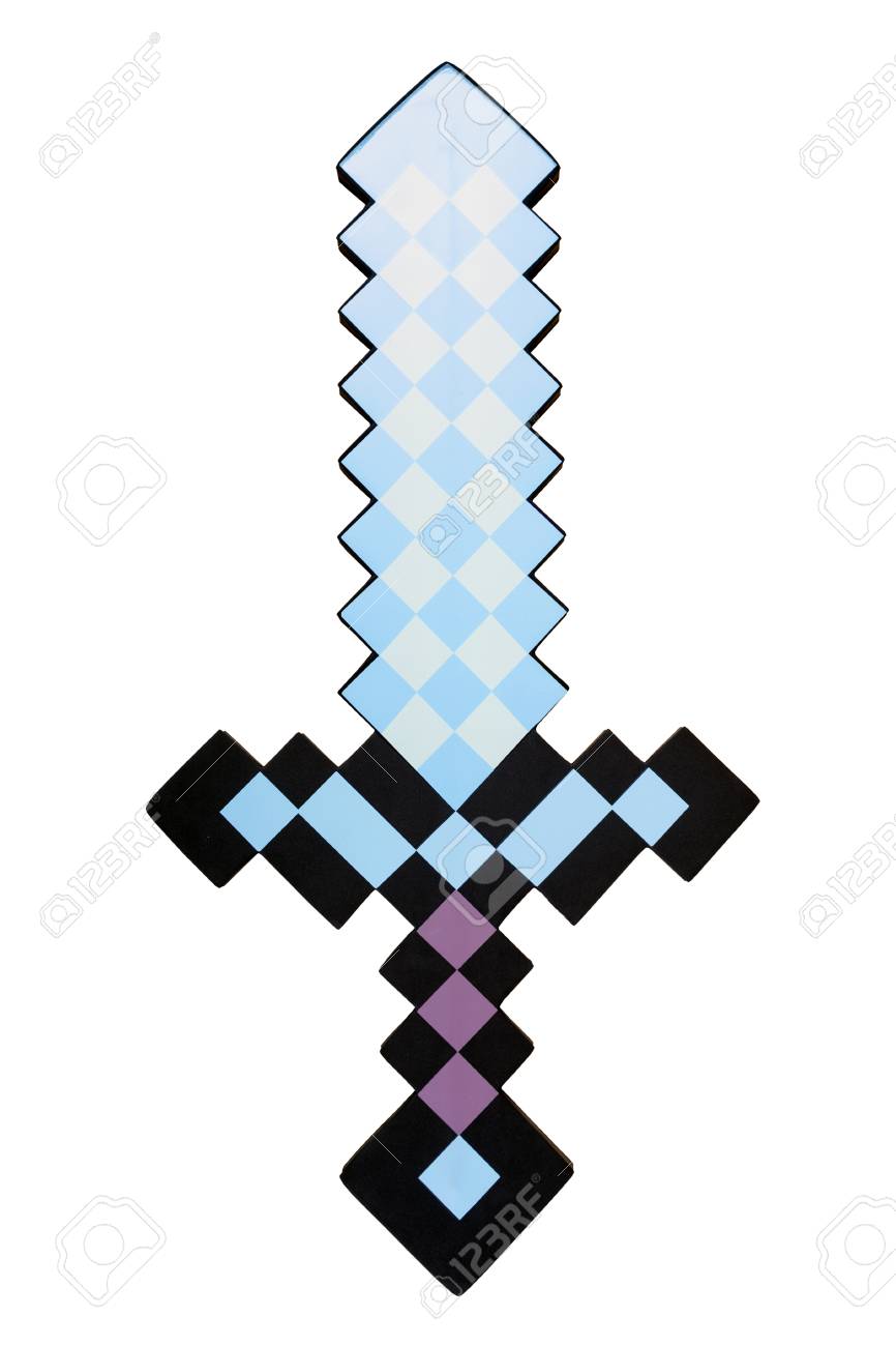 マインクラフトダイヤモンドの剣 白い背景に隔離されています の写真素材 画像素材 Image